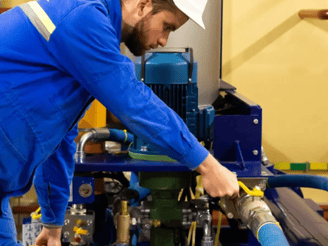 Troca de mangueiras, tubos, válvulas e bombas.